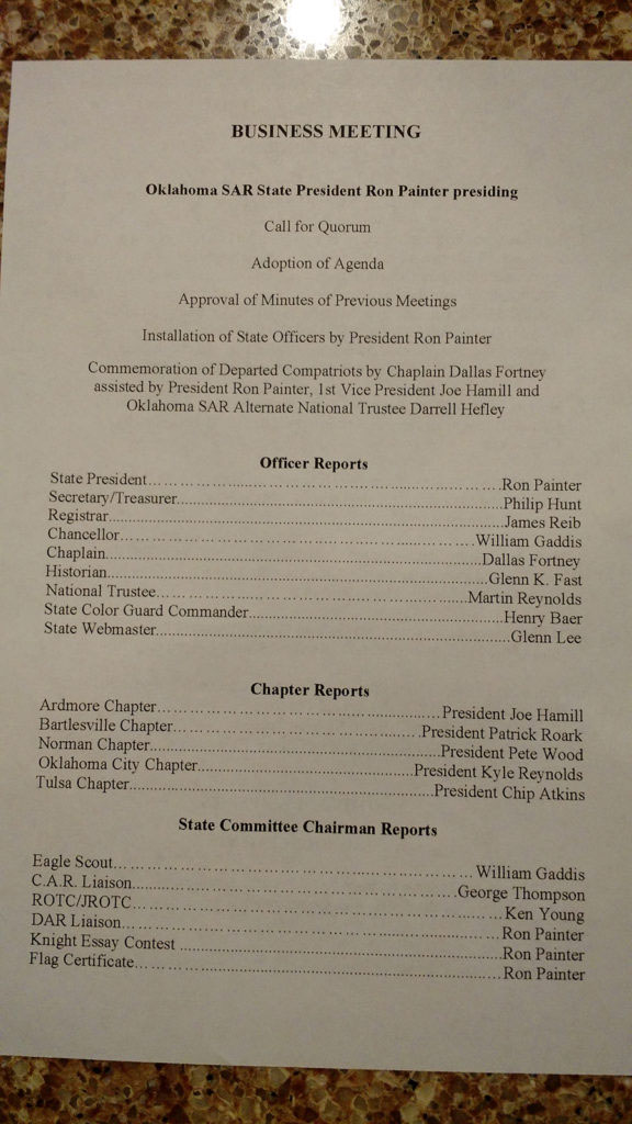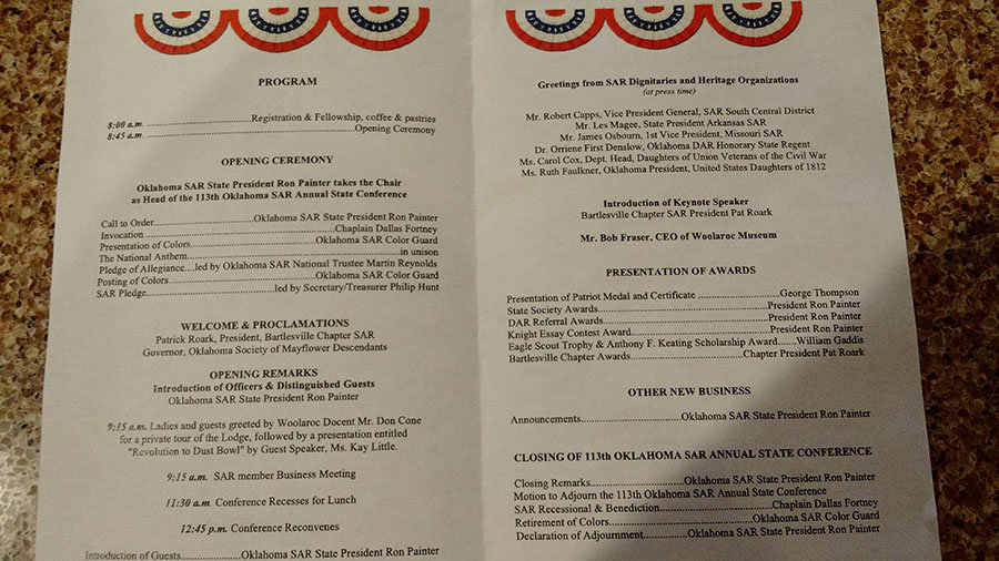 Gallery SAR, 113th Annual State Conference, Woolaroc Museum & Wildlife Preserve, Hosted by Bartlesville Chapter Memorial Day Veterans Day 2018 O.S.C.A.R. Conference – Bartlesville, Oklahoma New Members and Program Presenters